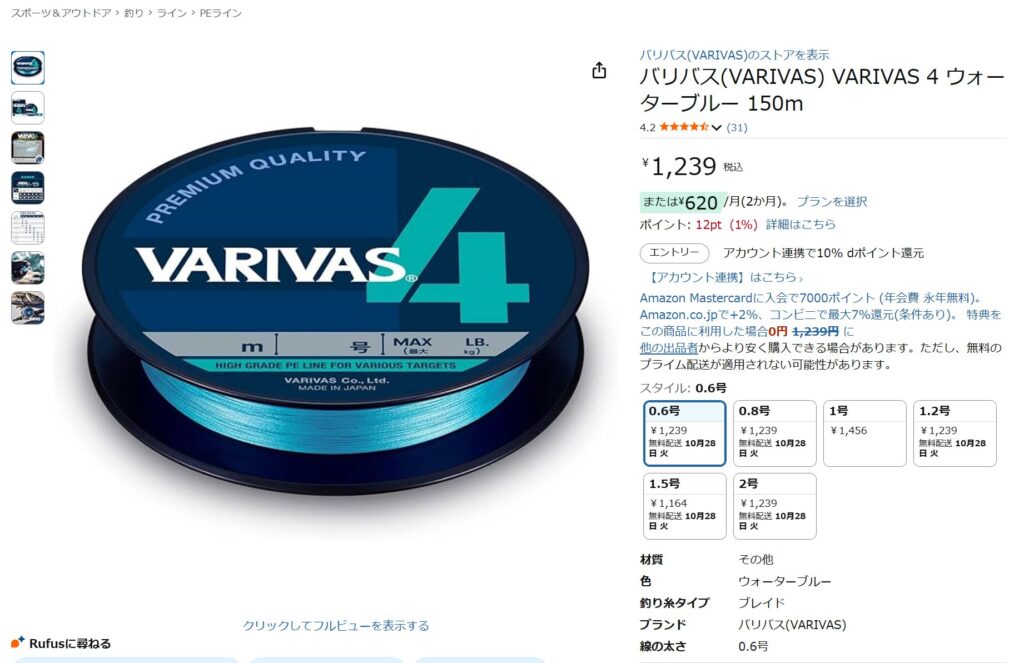 安いししなやか。劣化耐性に関しては賛否ありますが、傷んだ部分はドンドン切っていけば十分だと思っていてかなり気に入ってます。色はグリーンとブルーがあるんですが、視認性より釣果重視ならブルーが良いと思ってます。