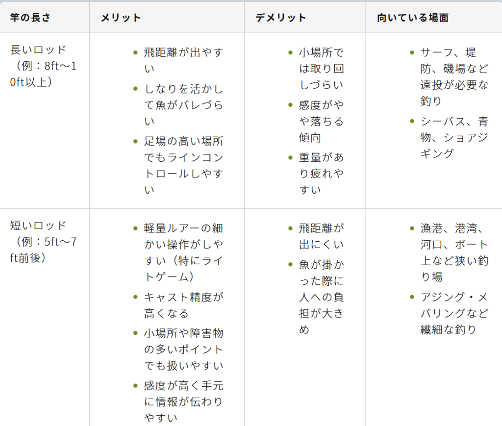 柔らかい=飛距離が出やすい、魚の衝撃を吸収してくれる、バラしづらい