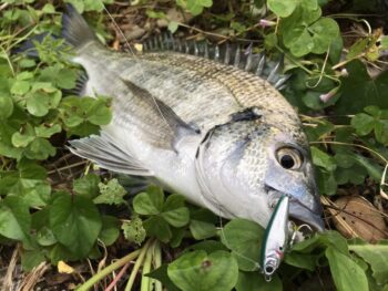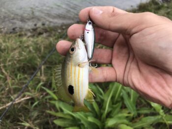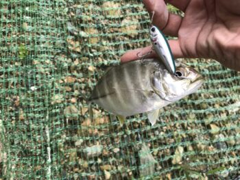 そして『豆ペン44F』をテロテロドッグウォークで動かしてトップおちぬちぬもキャッチ。いいね〜釣れますね〜〜〜^