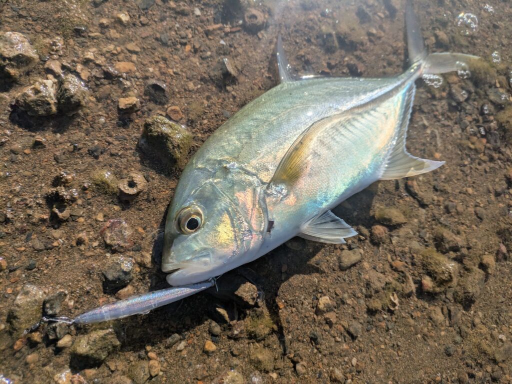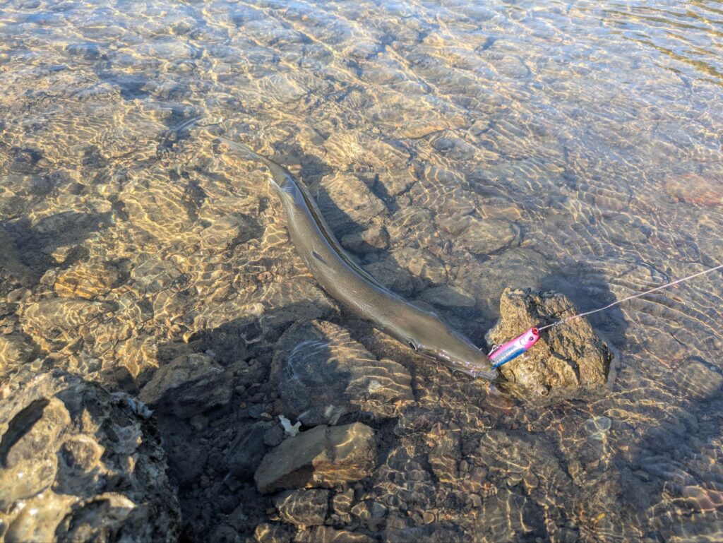 一発目はショアでは超久しぶりのオニカマス氏。ダイワのソルトペンシル爆速巻きに音速で食ってきました。ひ~しびれる。