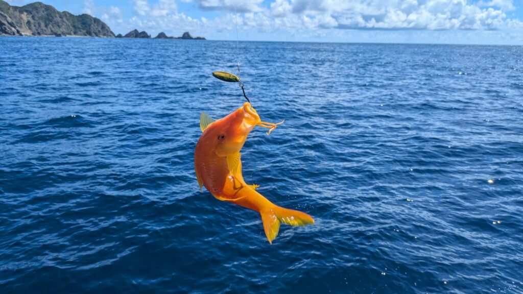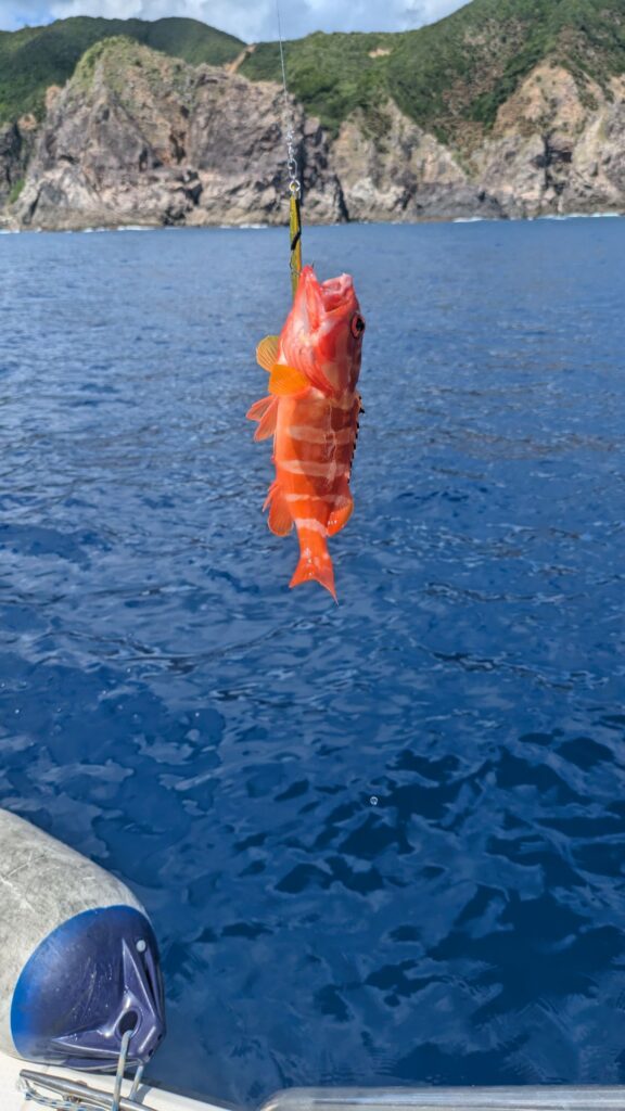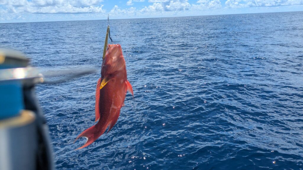 これは僕が釣ったカスミアジ。どちらかというと上層にいるイメージでしたがボトム付近で食ってきてビックリ。これは晩御飯に刺身でいただきました。めっちゃ美味い。