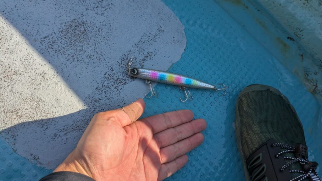 使おうと思ってたデカトップルアーを玄関に忘れてきてしまったため、手持ちで一番ましなジャンプライズの『かっとび棒』を使うことに。