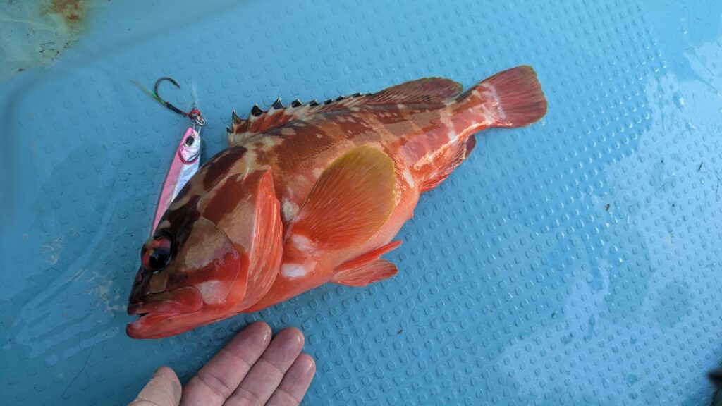結局ジギングでD氏がパンパンアカハタをキャッチしたのみで終了。