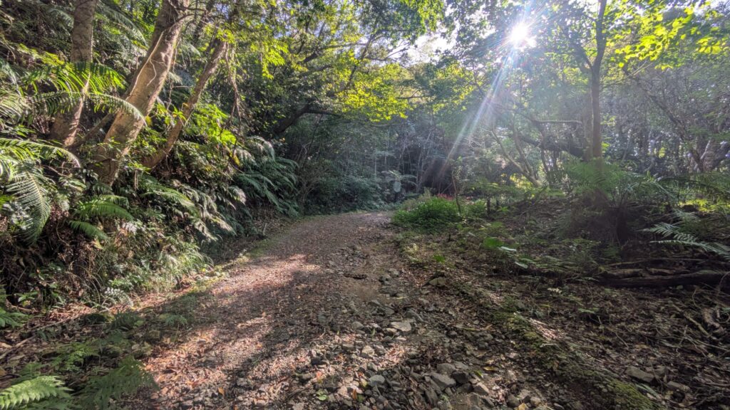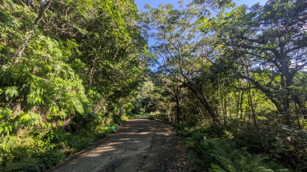 奄美は旧道がいたるところにあり、しかも意外と整地されているので散歩にすごく良い。両サイドの木が日光をもとめて中央に傾いてくるので、日よけにもなるし雨も軽減される。