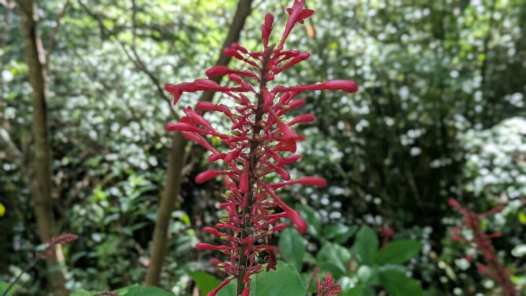 なにやら目立つ植物を発見。子供のころこの花の蜜を吸った記憶がありますが、名前は『ベニツツバナ』というそうです。熱帯地方でよくみられる植物とのこと。