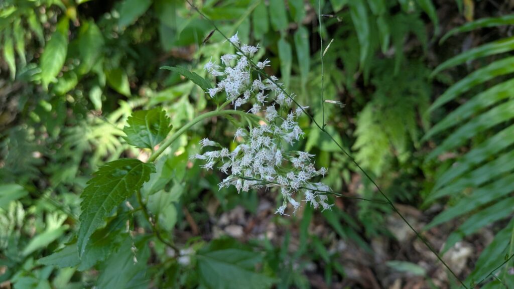 この控えめな感じの花。これはちゃんと地元出身の多分『ヤマヒヨドリバナ』という四国・九州以南に咲く花のようです。