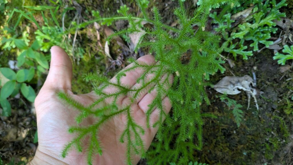 この水槽に入ってそうなモジャモジャした植物。これはヒカゲノカズラかミズスギのどっちかっぽいですが、よくわかりませんでした。いづれも北海道~九州まで幅広く自生しているらしいです。不思議な分岐の仕方してるな。。。素数?