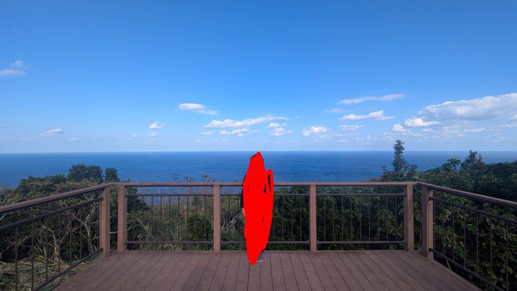 こんな感じですが、パノラマじゃないと収まらない水平線です。
