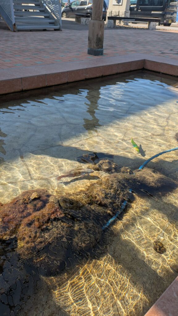 絶対に見てほしい魚の生け簀。前に一瞬だけバケモンみたいなウツボ?コバンザメ?みたいなやつを見たんですが幻?なんかやばいのがいるのは確か。