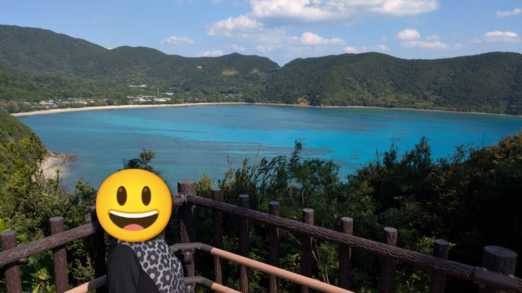 大和村の峰山公園展望台。個人的にここが一番水平線を広角で見れる場所だと思っています。沖にはプリンの形をした横当島も見る事ができます。