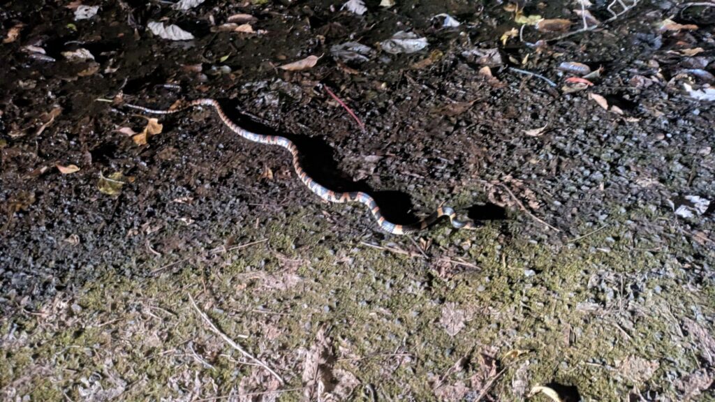 これはナイトツアー的なものをやるための下調べ中に発見したアカマタ。ハブ探しの外道的な扱いですが、見た目的にとても綺麗ですし南国感があって好きなやつ。