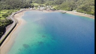 大島海峡、枝手久島と宇検イカダのBポイントが見えます。向こう岸は加計呂麻と見せかけて宇検のタエン浜等々。