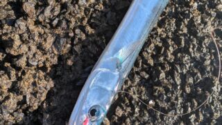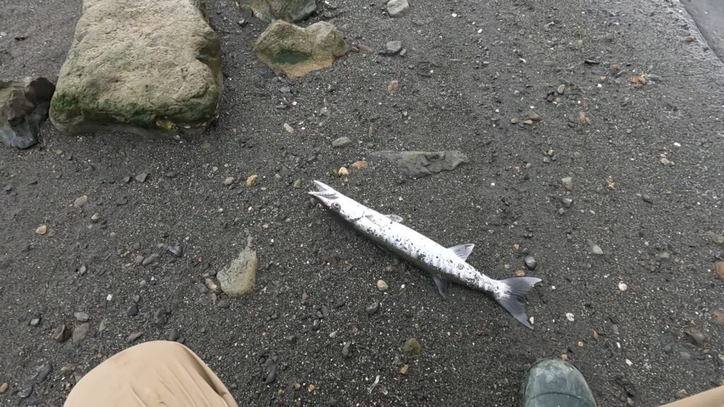 ベタ凪&高透明度という状況でしたが、なんとかオニカマスを1キャッチ。ド派手アクションでは食ってこず、SPM75のスロー巻きでほぼ丸飲みバイト。メッキは出ず。