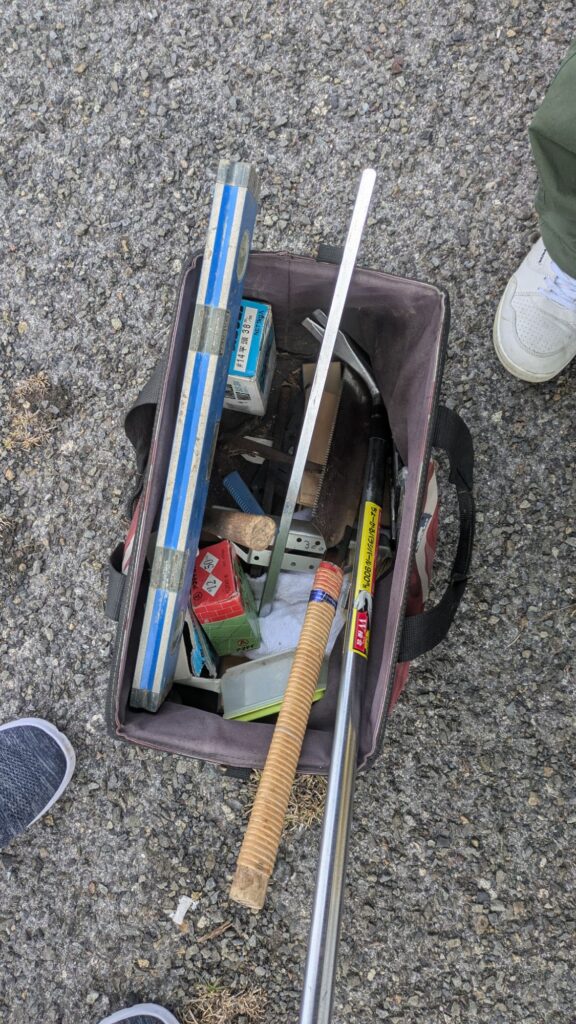 こちらは事務所改装用に友達から借りた工具。私はこの辺に関しては素人なので色々教えてもらい、サポートしてくれてます。